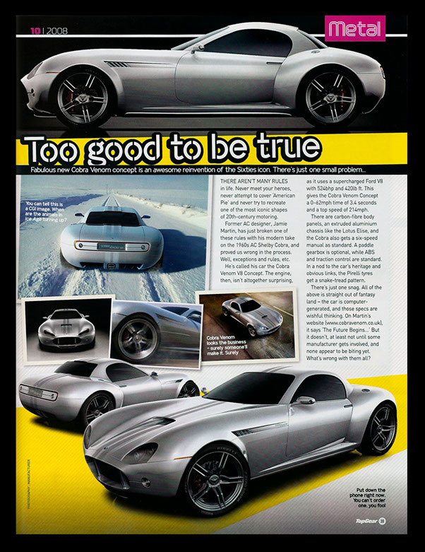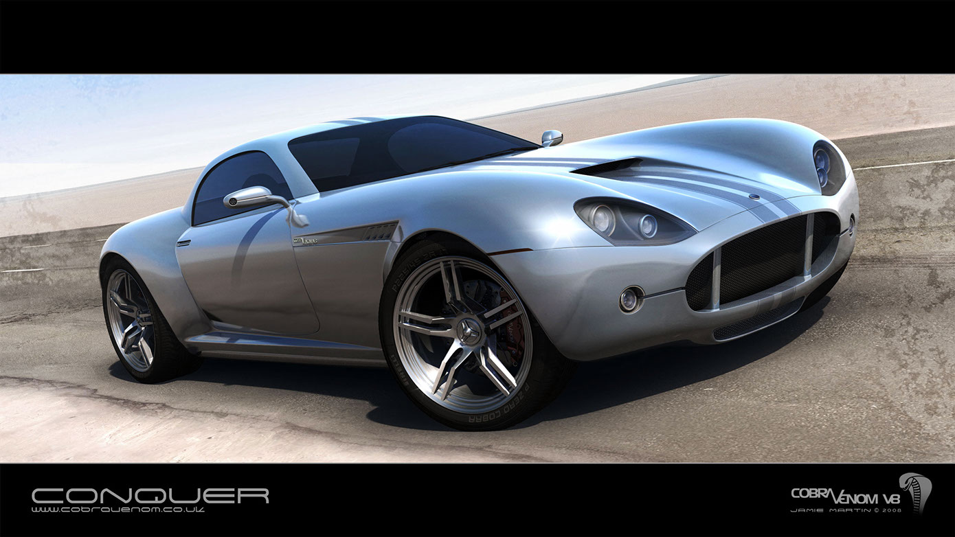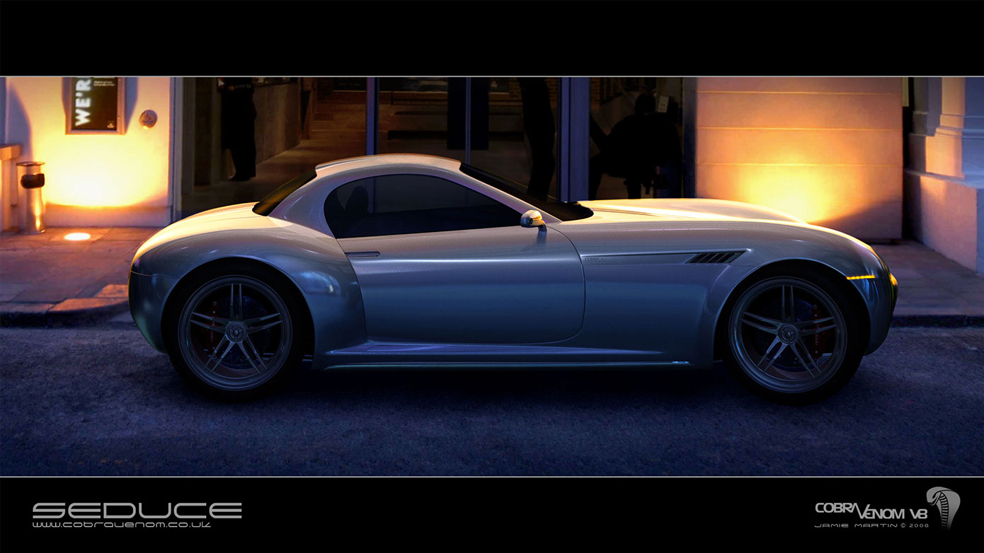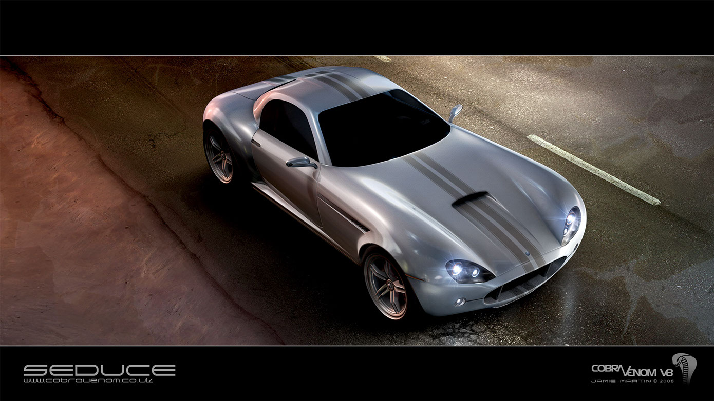 Designed as a spiritual successor to the classic AC/Shelby Cobra. Being a great fan of the sixties icon, I wanted to produce a modern-day take on the legendary muscle-car that would capture it's true essence. The original car's flowing lines, combined with the bulging muscular forms, have sealed its mark in the hearts of many; it is truly unmistakable. My design received wide critical acclaim, and was showcased in a number of magazine articles.