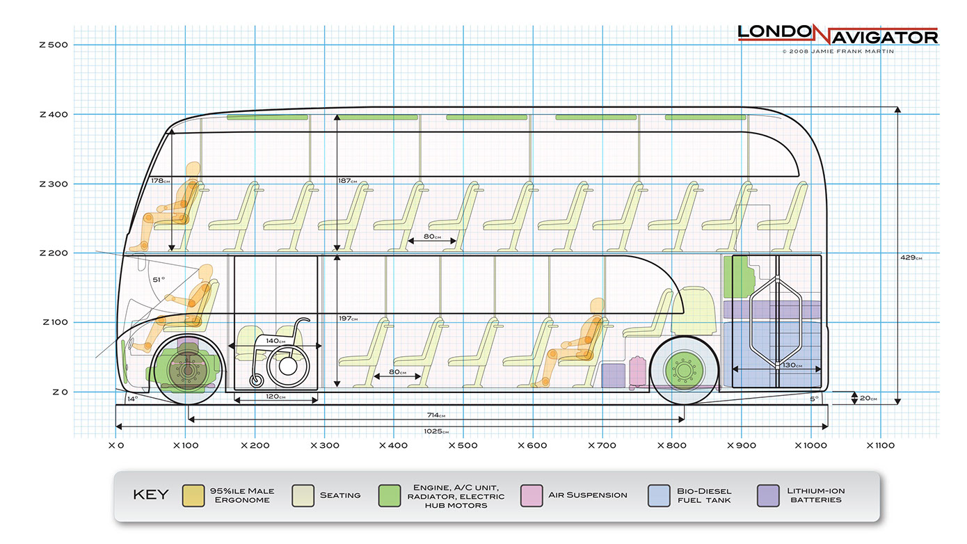 In the summer of 2008, London Mayor Boris Johnson launched a worldwide competition, open to both design agencies, companies, and individuals, to design a replacement for the classic Routemaster bus. The competition closed in September 2008, and the winners were invited to an awards ceremony in London's Westminster on 19th December 2008. I was awarded as a joint second place winner, behind first place Aston Martin/Foster+Partners. The finished 'New Routemaster' was launched in the Spring of 2012, and can now be seen on the streets of London.